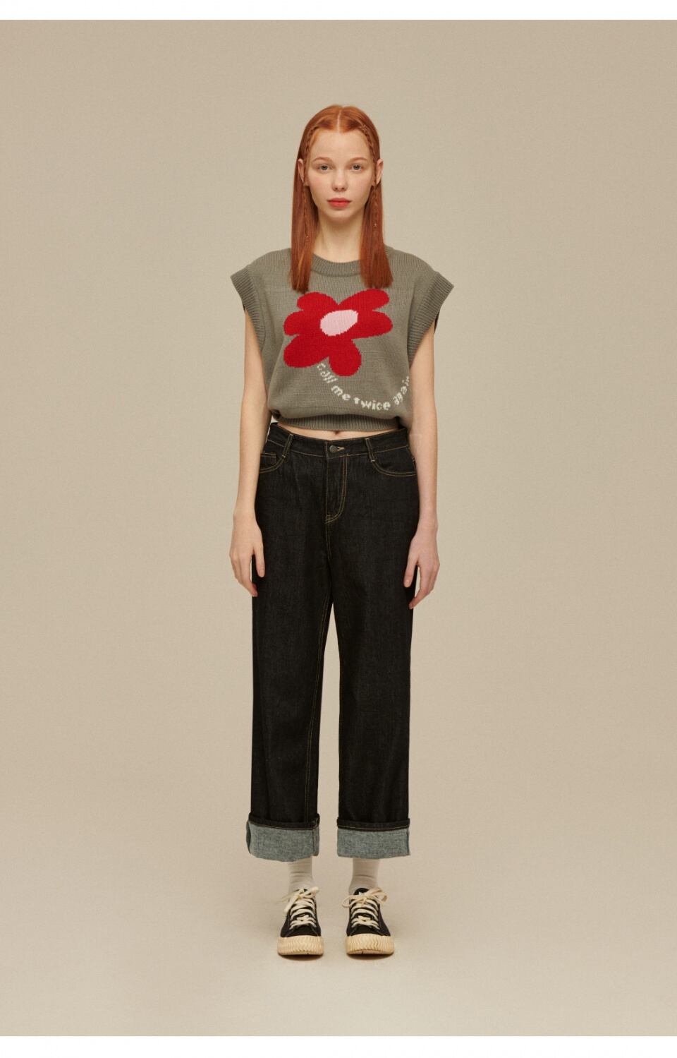 Flower Crop Knit Vest・STONE GREY