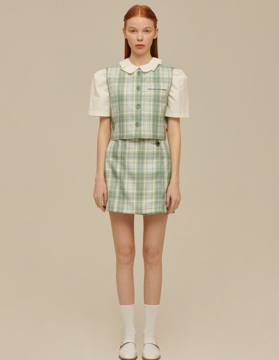Pocket Vest ポケットベスト PASTEL GREEN CHECK