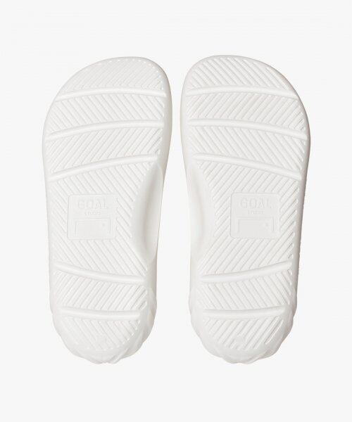 ヒールとサイドにGOALSTUDIOのロゴが両脚に適用されており、裏面の斜めディテールが過度でなくほのかに目立ちます。